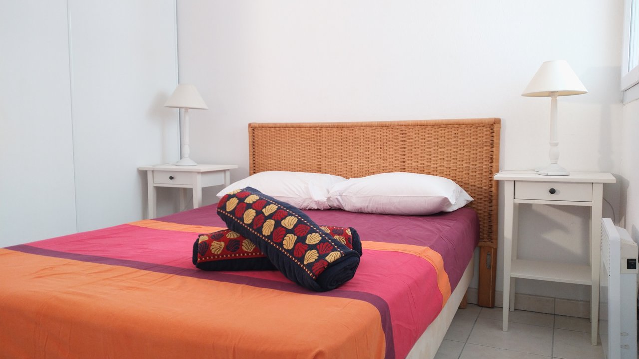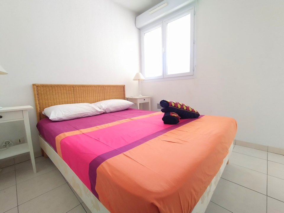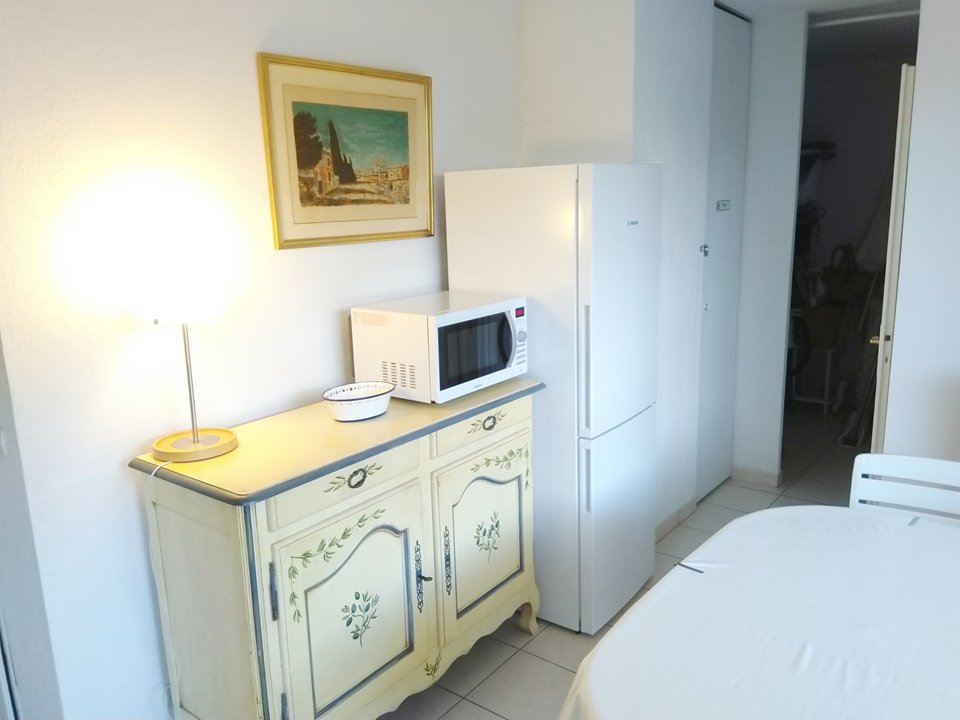 Composition : Séjour 1 convertible 2 pers, espace cuisine équipé avec plaques électriques, lave-vaisselle, lave-linge, réfrigérateur-congélateur, four micro-ondes, mini-four, chambre 1 lit 2 pers, salle de bains (douche), wc séparé. TV. 50m Centre ville - 50m Commerces - 300m Marina - 400m Plages de sable.