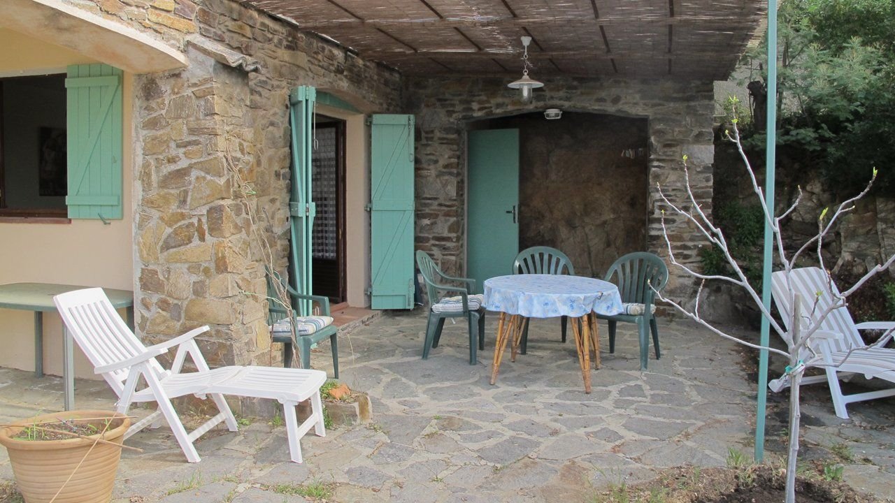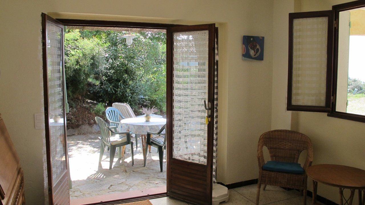 Studio en villa avec terrasse vue mer, en rez-de-jardin, à 400m des plages de sable, 800m des commerces, exposition Sud, parking privé.