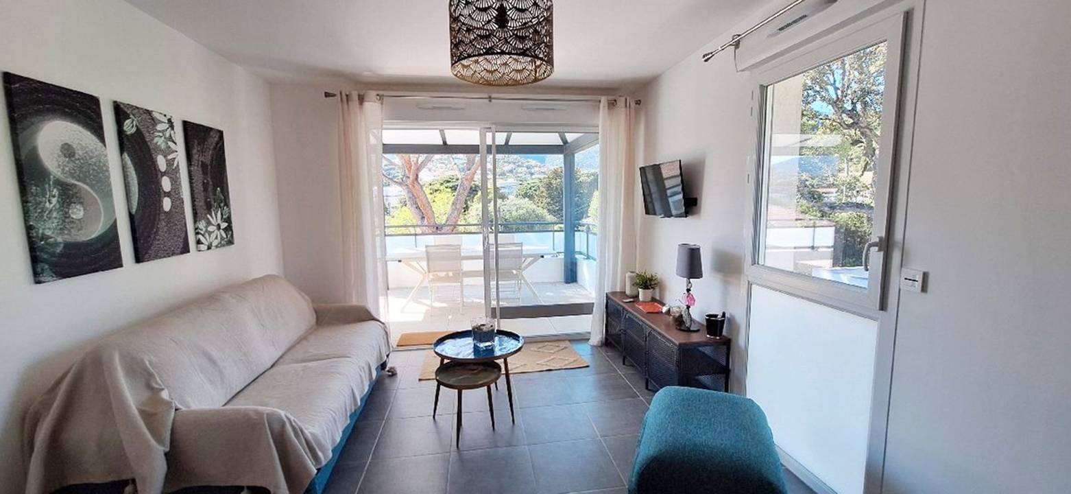 Bel appartement climatisé 2 pièces de standing pour 2 personnes à 500m des plages et des commerces. Grande terrasse de 17 m2. Situé au 1er et dernier étage d'une petite résidence sécurisée. Ascenseur. Parking privé. Quartier calme et résidentiel.