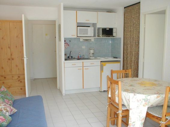 Appartement de 2 pièces, à 300m de la plage, rez de jardin, terrasse, parking privé sécurisé. Exposition Sud.Proche centre-ville mais au calme. Entrée, séjour canapé convertible, TV, espace cuisine équipé avec plaques electr, réfrigérateur-congélateur, micro-ondes, lave-linge, lave vaisselle. chambre lit 140, cabine 2 lits superposés, salle de bains(douche), wc séparé. 50m Centre village