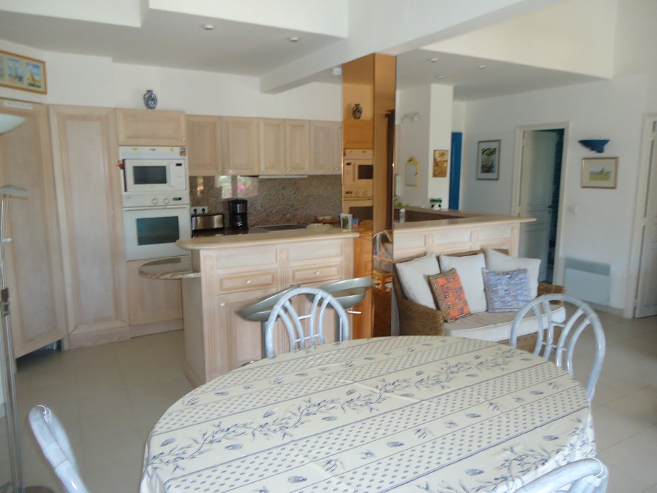 Composition : Entrée, Séjour convertible 2 pers, TV, cuisine amèricaine équipée avec lave-vaisselle, micro-ondes, lave-linge, plaques vitro, refrigerateur-congel, chambre 2 lits 1 pers, salle de bains (douche), WC. 800m Plage de sable - 1000m Commerces - 2000m Marina/Port - 2500m Centre village.
