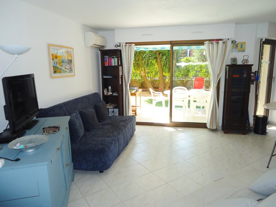 Bel appartement climatisé de 2 pièces en rez de jardin, à 200m de la plage, WIFI, 40 m2, terrasse et jardin 100m, exposition ouest. Garage privé. (navette des plages et village gratuite en été). Séjour climatisé, canapé convertible 2 pers, cuisine américaine équipée avec micro-ondes, plaques vitro, réfrigérateur congélateur, lave-vaisselle, four, , chambre 1 lit 2 pers 140, salle de bains (douche, lavabo, lave-linge), WC séparé, TV.