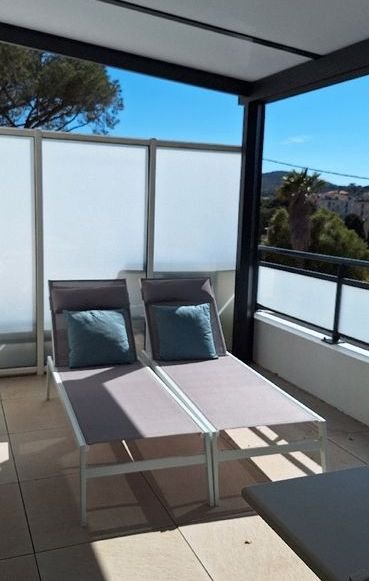 Bel appartement climatisé 2 pièces de standing pour 2 personnes à 500m des plages et des commerces. Grande terrasse de 17 m2. Situé au 1er et dernier étage d'une petite résidence sécurisée. Ascenseur. Parking privé. Quartier calme et résidentiel.
