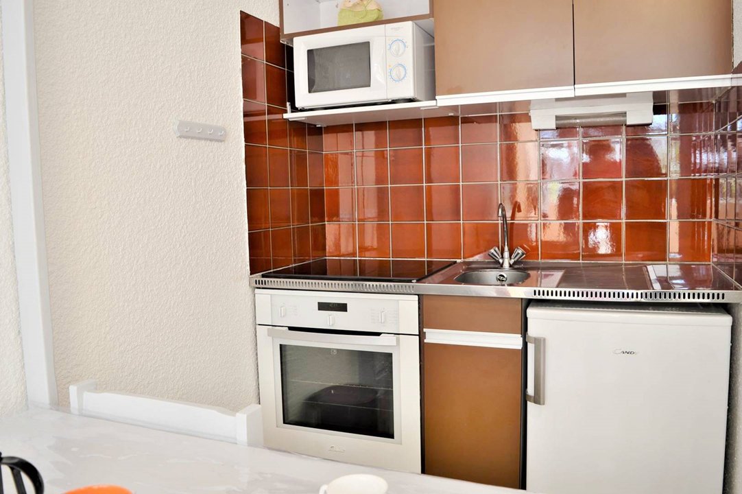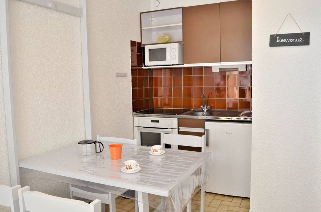 Joli studio au 2° étage, ascenseur, 20m2 , exposition sud-ouest, terrasse équipée avec mobilier et store banne, 500m de la plage, 200m centre, garage privé. Entrée, cabine 2 lits superposés 1 pers, espace cuisine équipé avec plaques vitro, réfrigérateur-congélateur, four, four micro-ondes, séjour canapé convertible 2 pers, TV, salle de bains (douche, lavabo), wc.